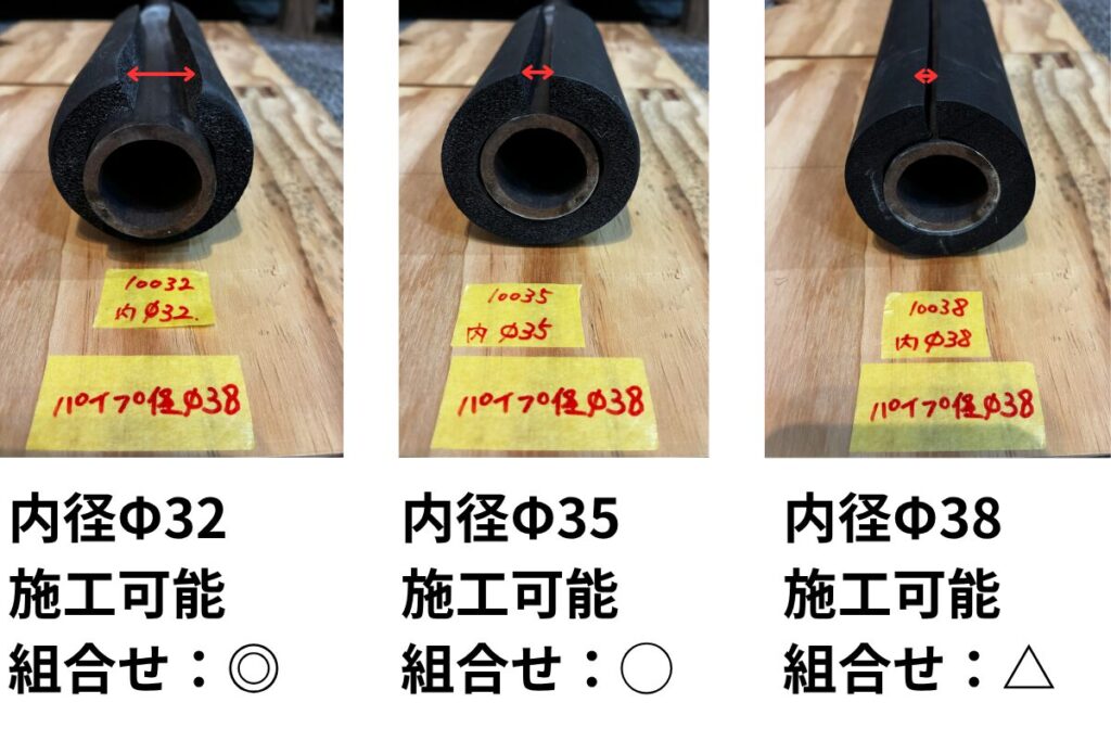 パイプの外形とエアロフレックスの内径が同径は推奨されません。