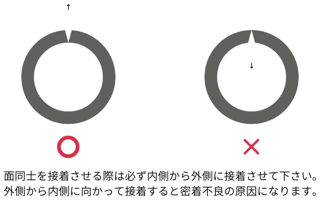 - 合わせたところからすぐに手でしっかり押さえて圧着する